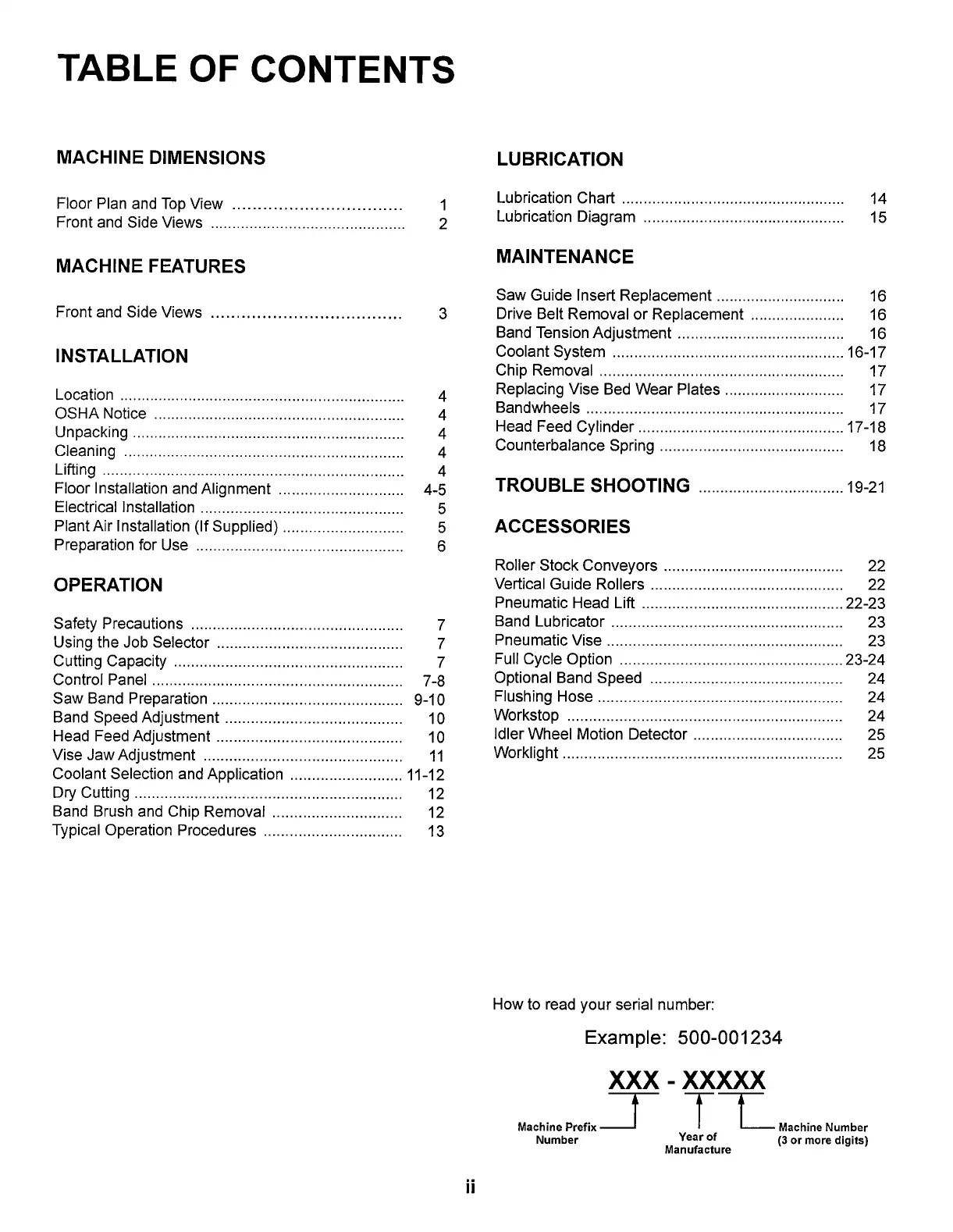 DoAll C-916S - Table of Contents