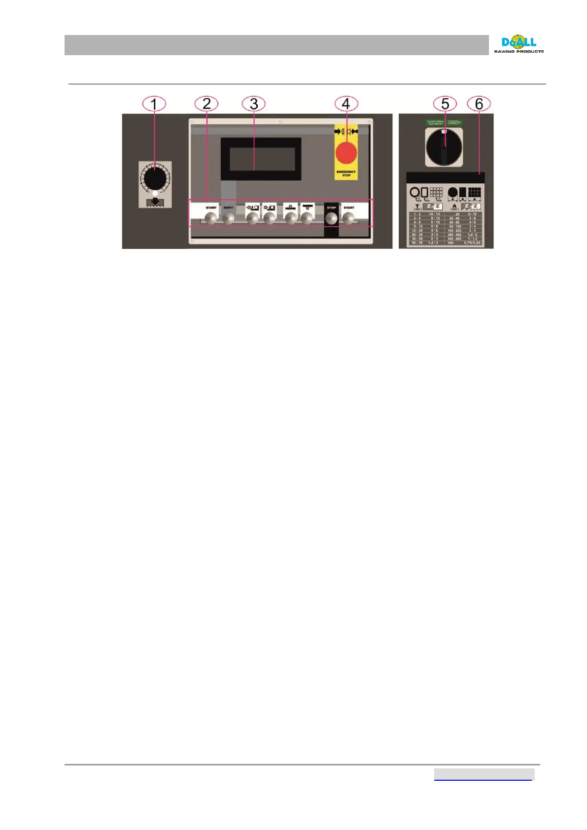 3. If the saw was turned off with EMERGENCY STOP button (pos. 4) unlock the EMERGENCY STOP