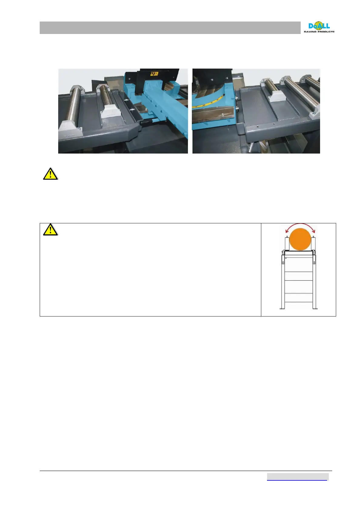 of the saw (i.e. level determined by the tangent of the support rollers). If the routes are not in alignment, the