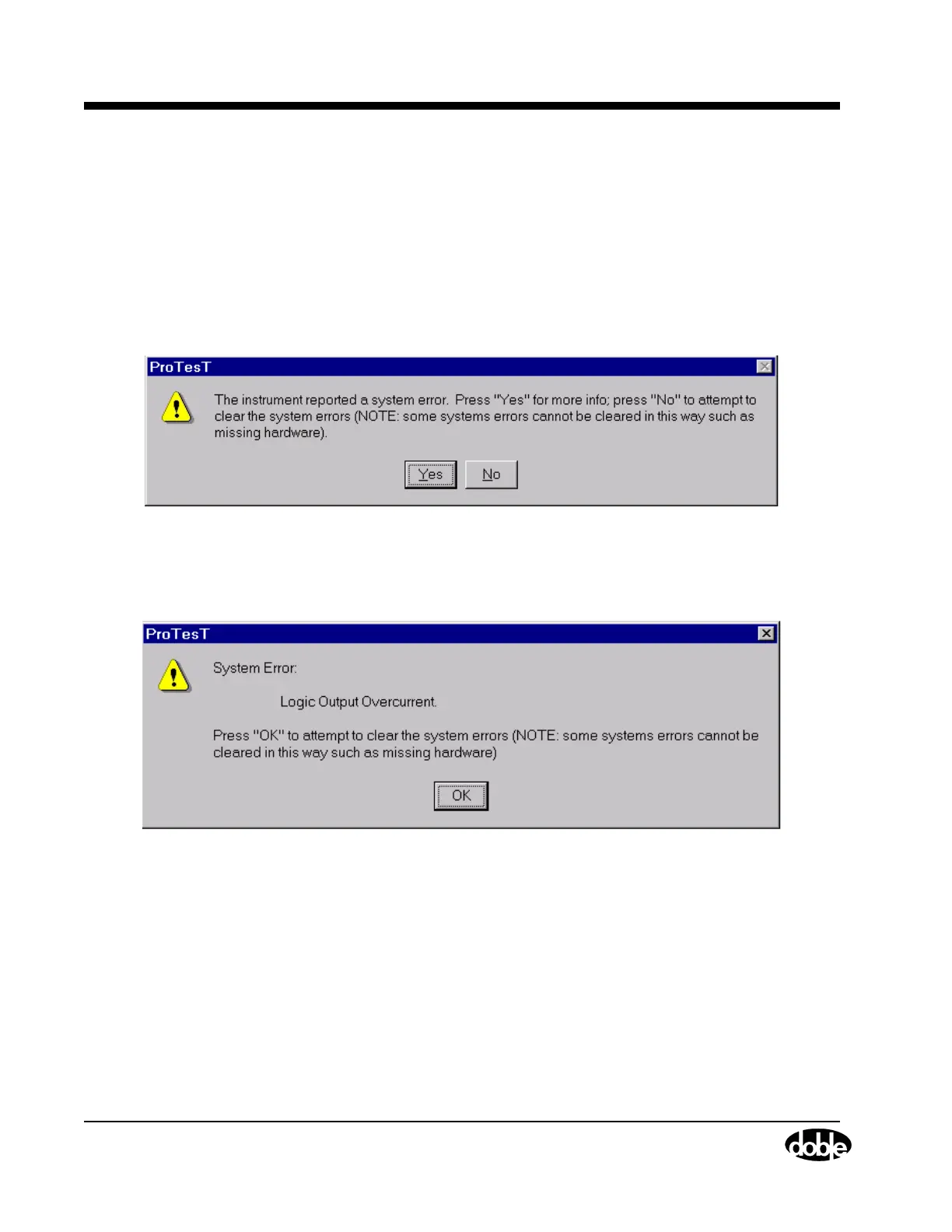 System errors display in a ProTesT dialog box. Figure 6.4 shows the first