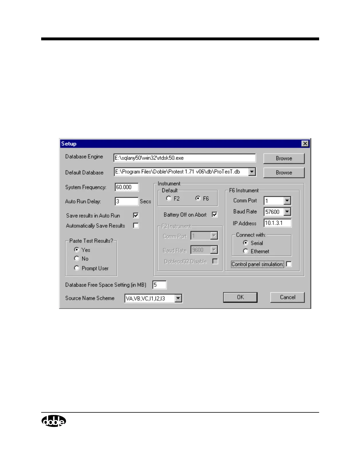 to communicate with the F6000 instrument. To open the Setup display,