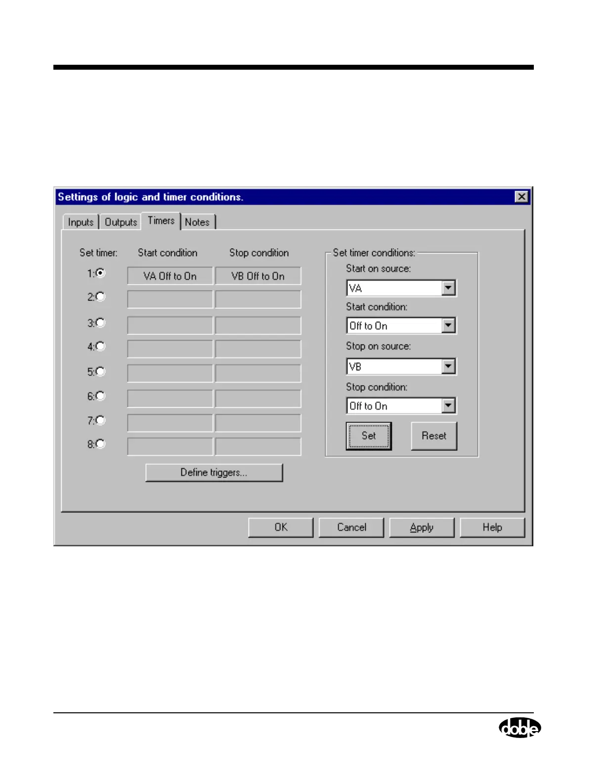 Figure 4.14 Start and Stop Conditions Set in the Timers Tab