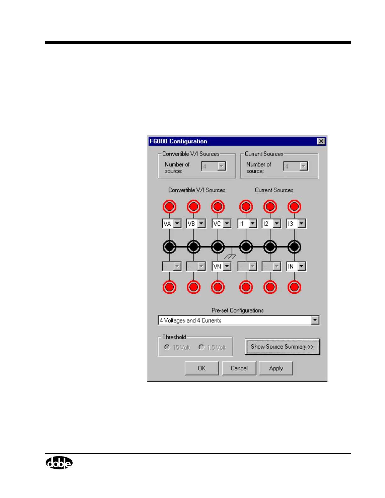 test requirements. Configure these sources via the F6000 Configuration