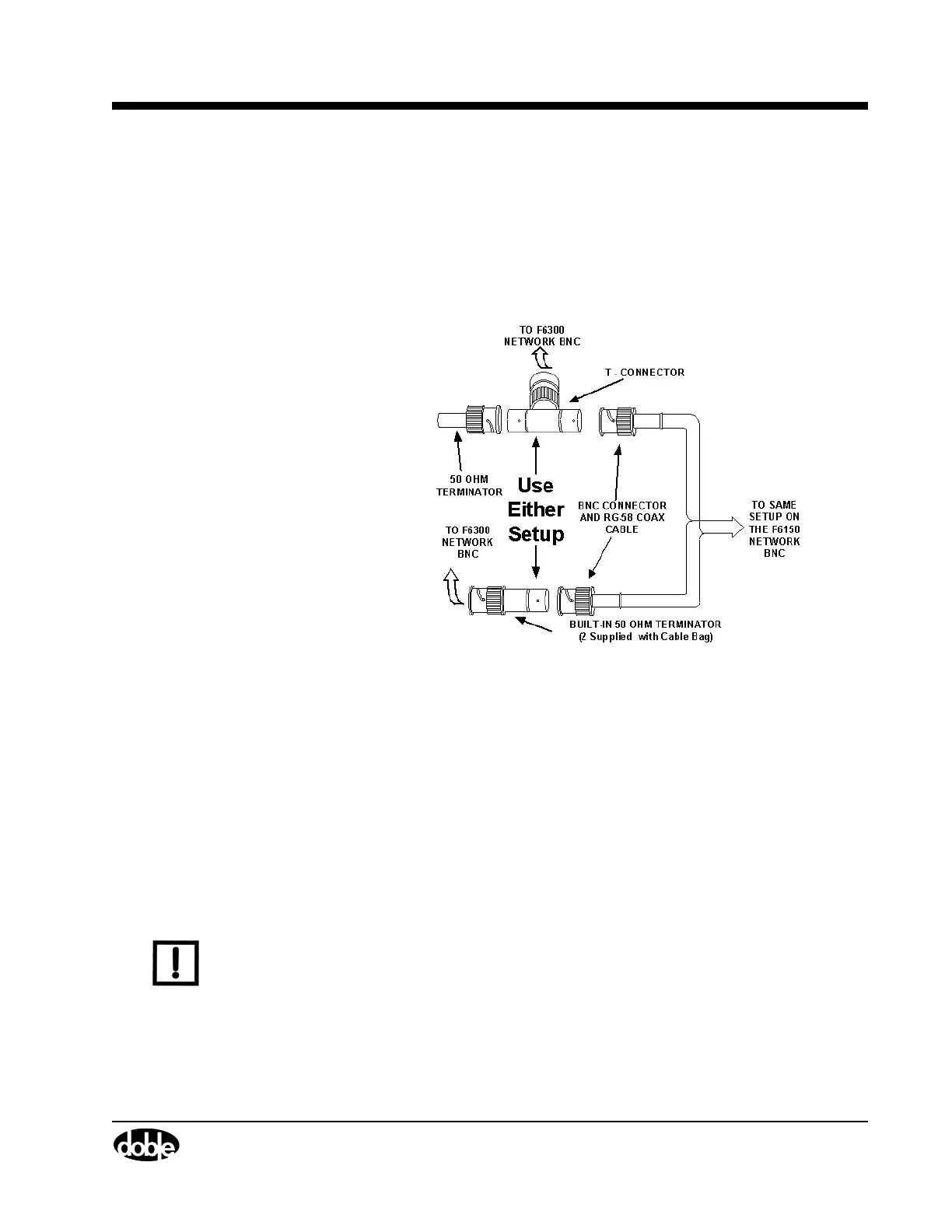 2. Connect the second 50 Ohm terminator to the F6300 network BNC connector.