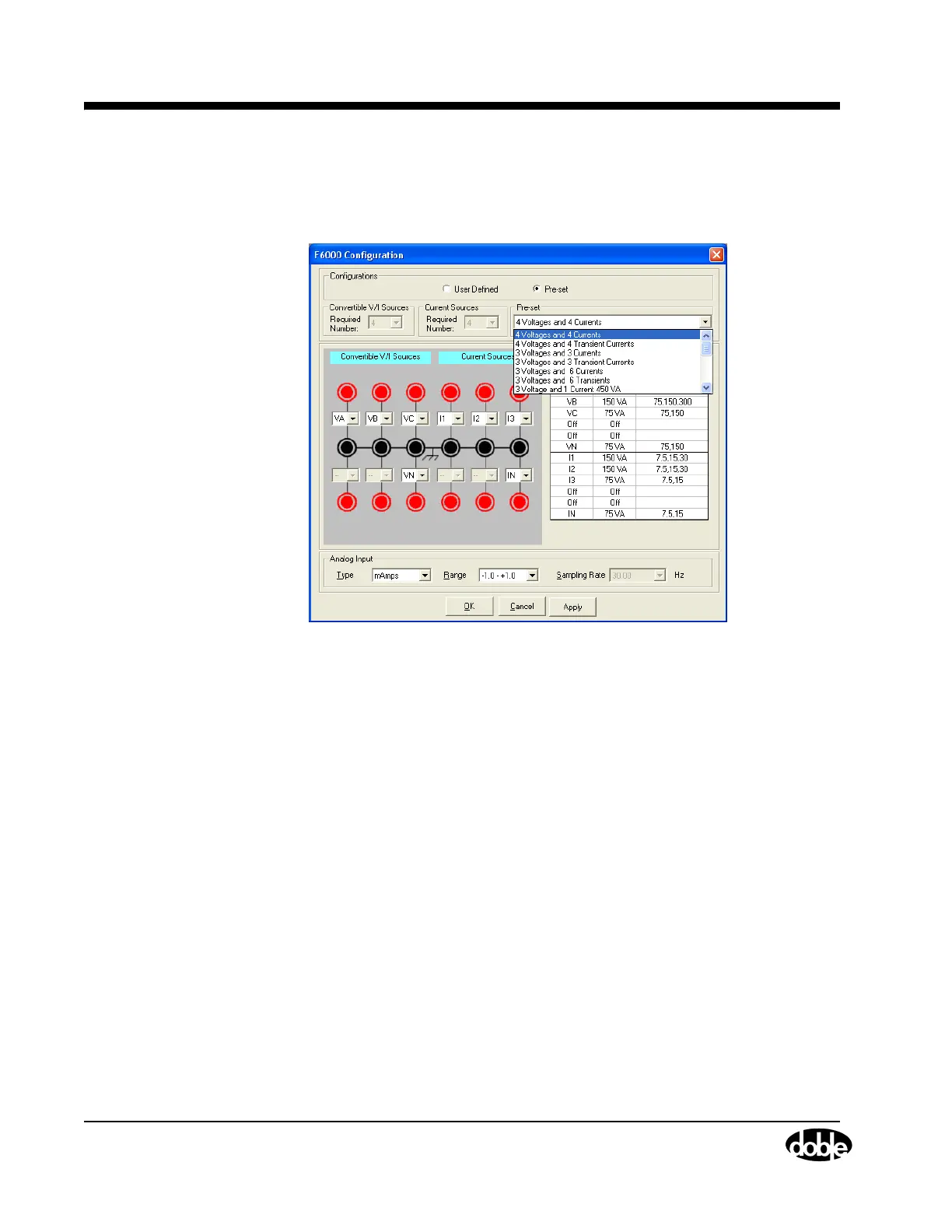 2. Configure the F6150/F6300 sources using the Pre-set Configurations dropdown box (User