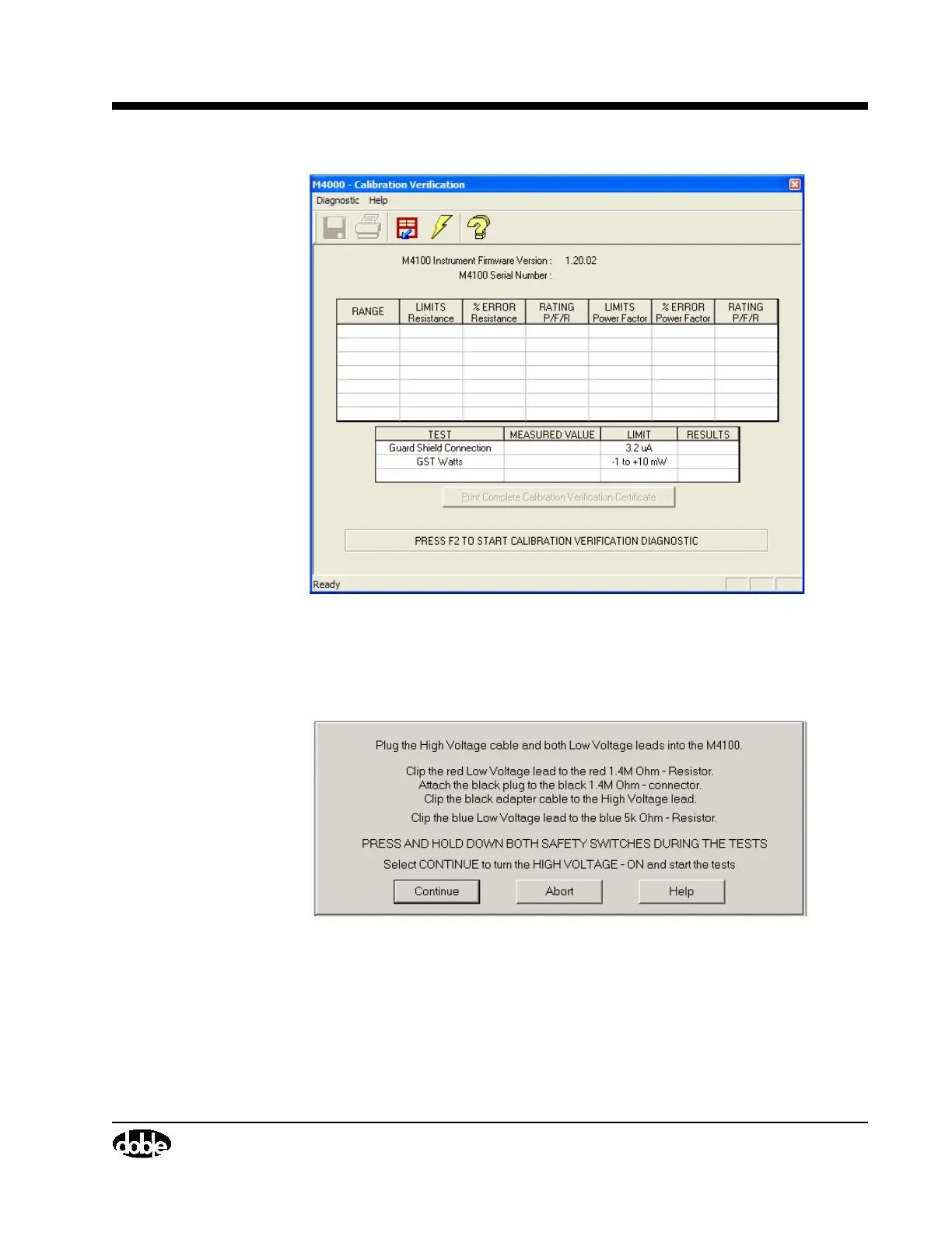 Connections for the Calibration Verification are shown in Figure 4.6 and