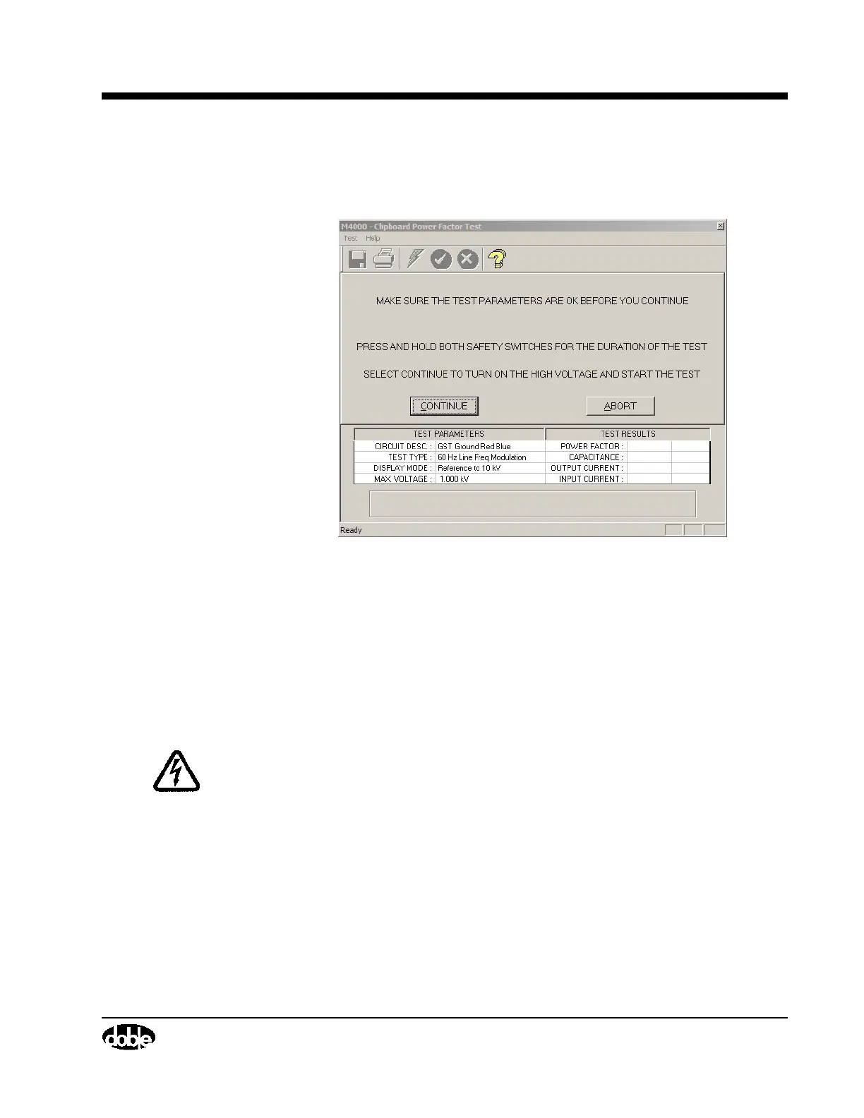 WARNING High voltage will be present after starting the test. Pressing the ESC key