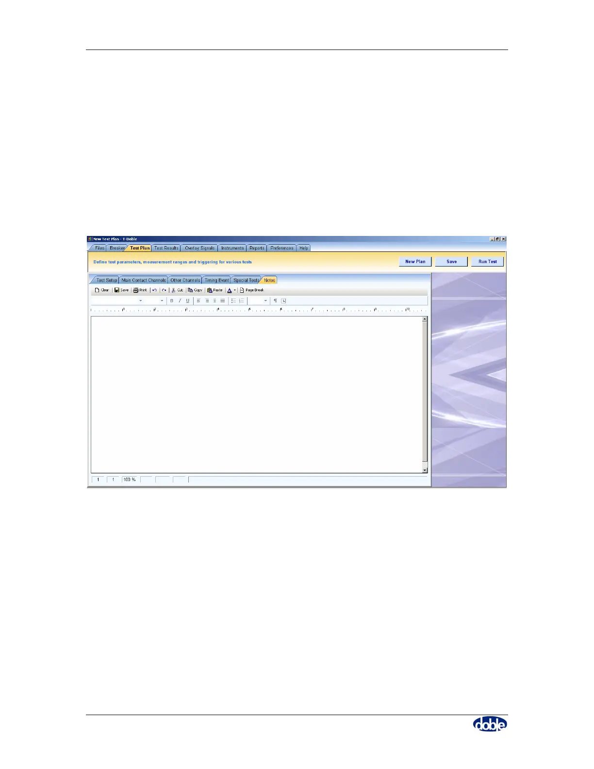 Test Plan Notes are entered on the “notes” sub tab, Figure 35. Notes may include:
