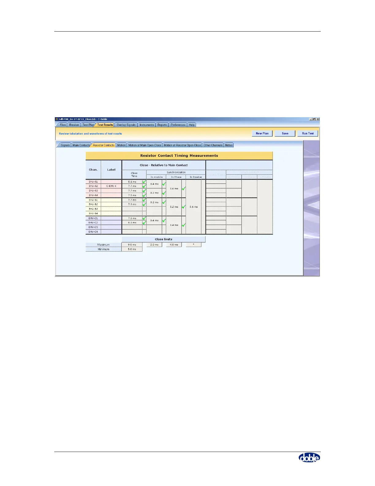 Resistor contact timings are reported on the “Resistor Contacts” tab, Figure 40. If limits