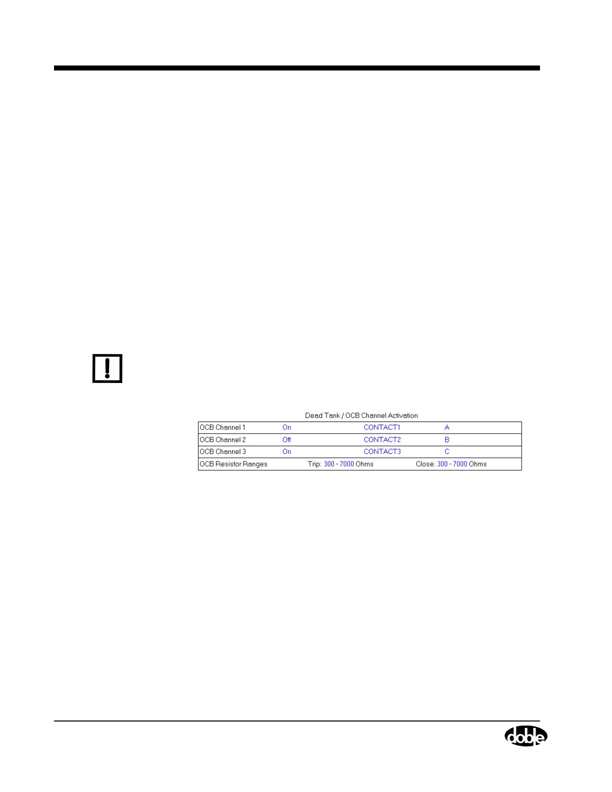 The section discusses the Dead Tank/OCB Main Contact parameters