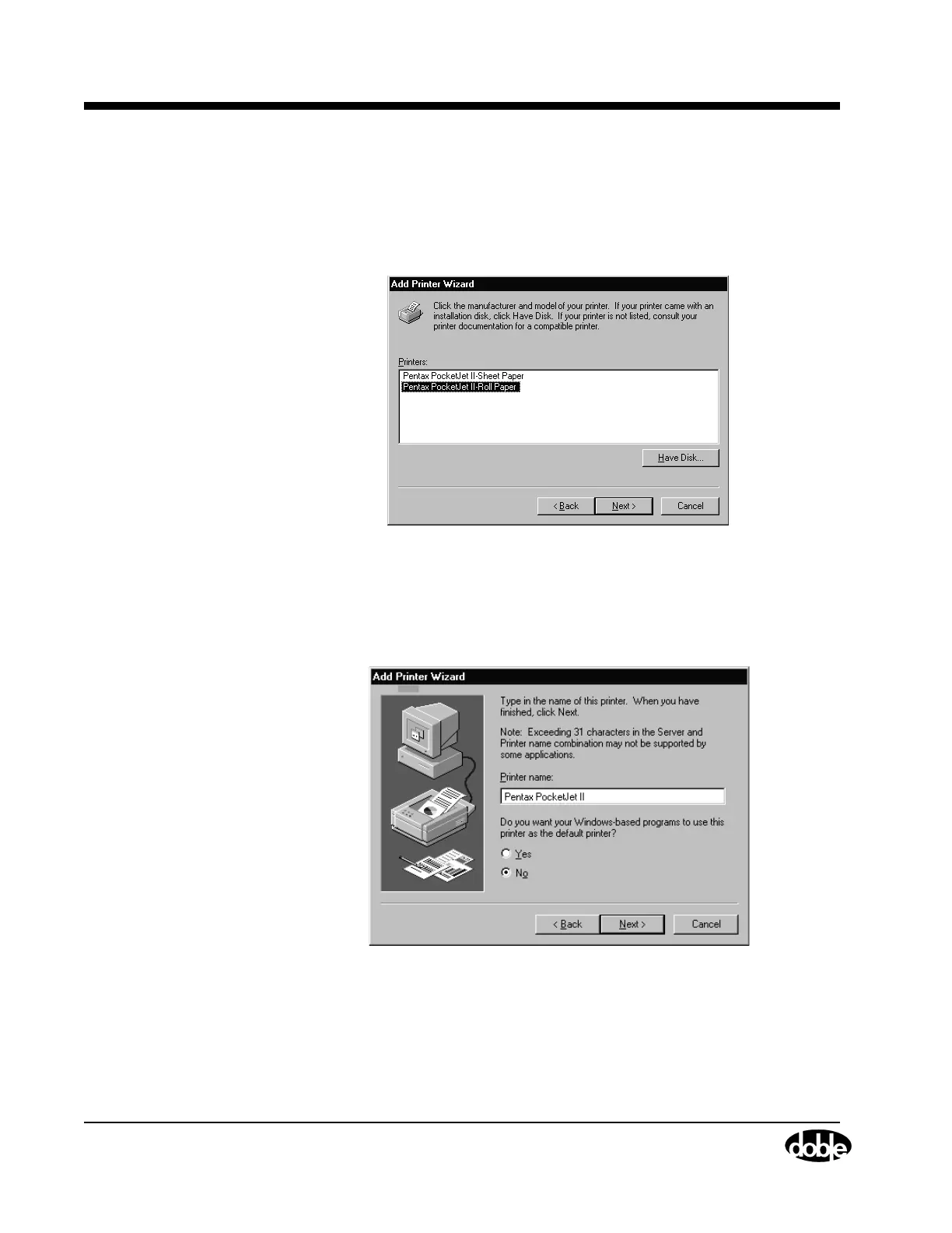 13. Click Pentax PocketJet II - Roll Paper and then click Next.