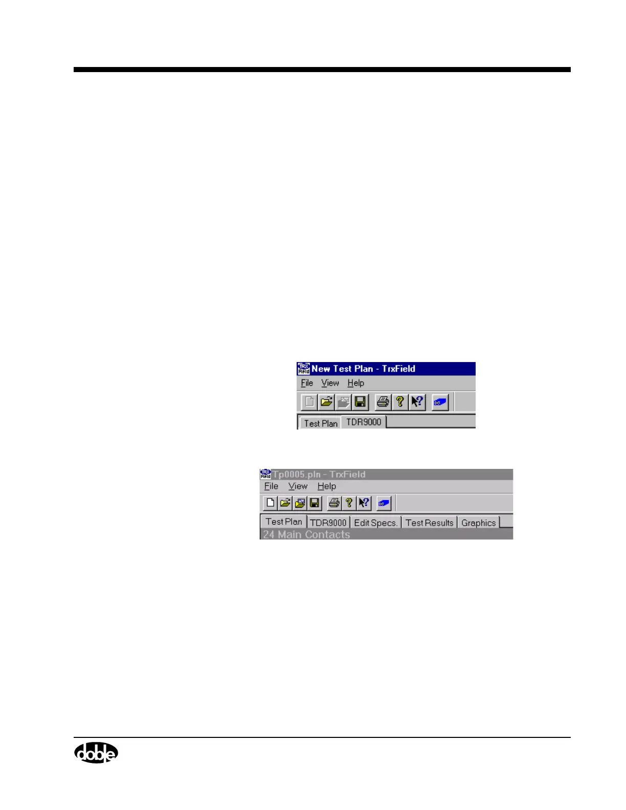• Navigating the TDR9000 Virtual Front Panel tab in TRXField