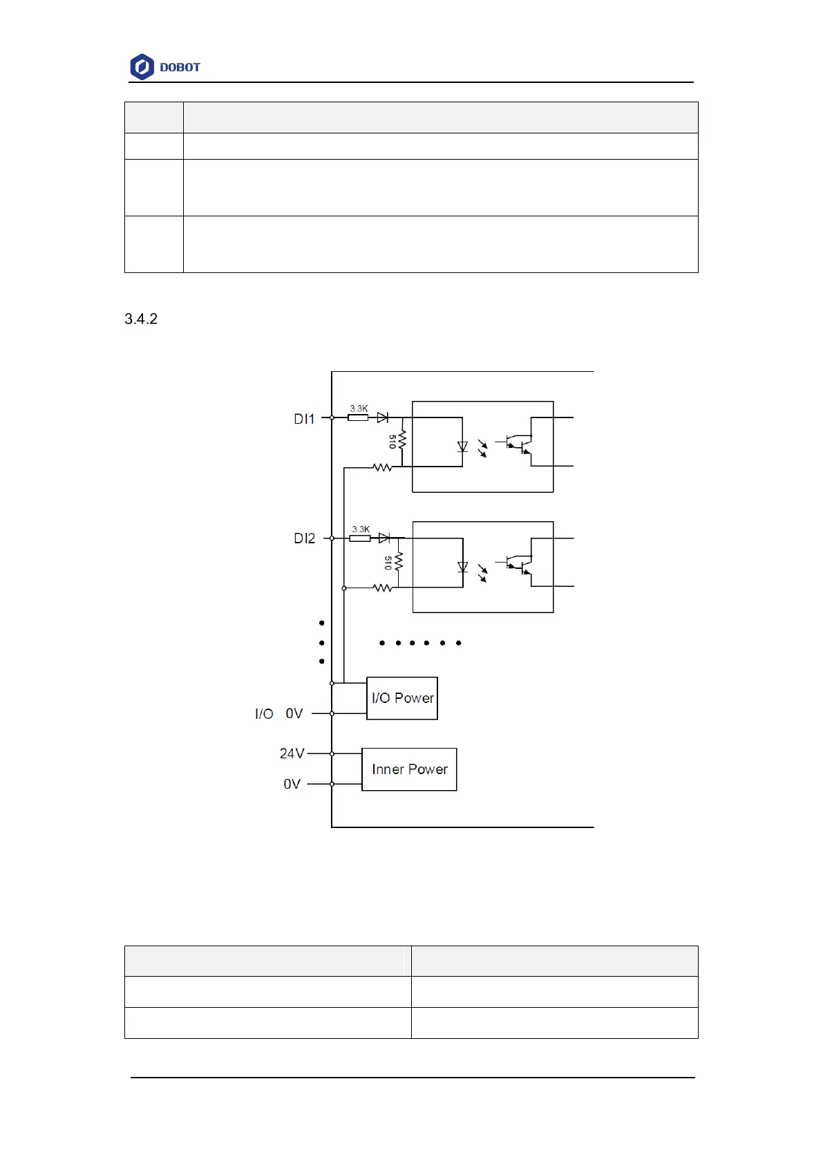 Figure 3.8 shows the simple digital input circuit and Table 3.8 lists the technical specifications.