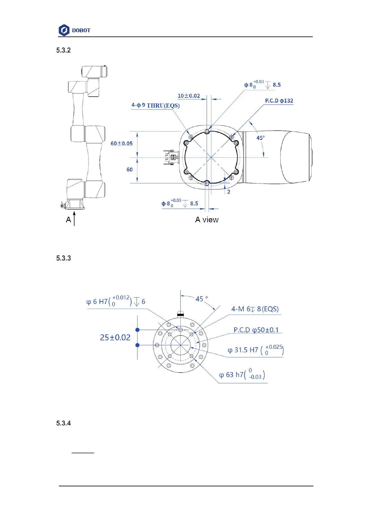 The end flanges of CR A series robot arms (except CR20A) are all in the same size. The flange