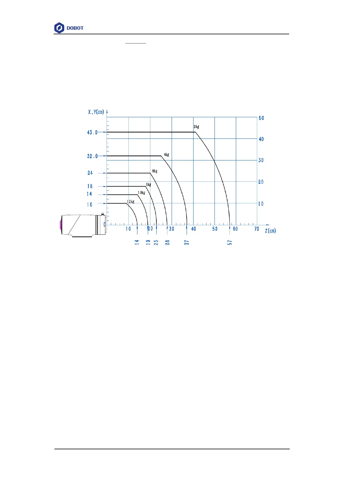 Select the corresponding curve according to the weight of the load. As the load is 3.8kg,