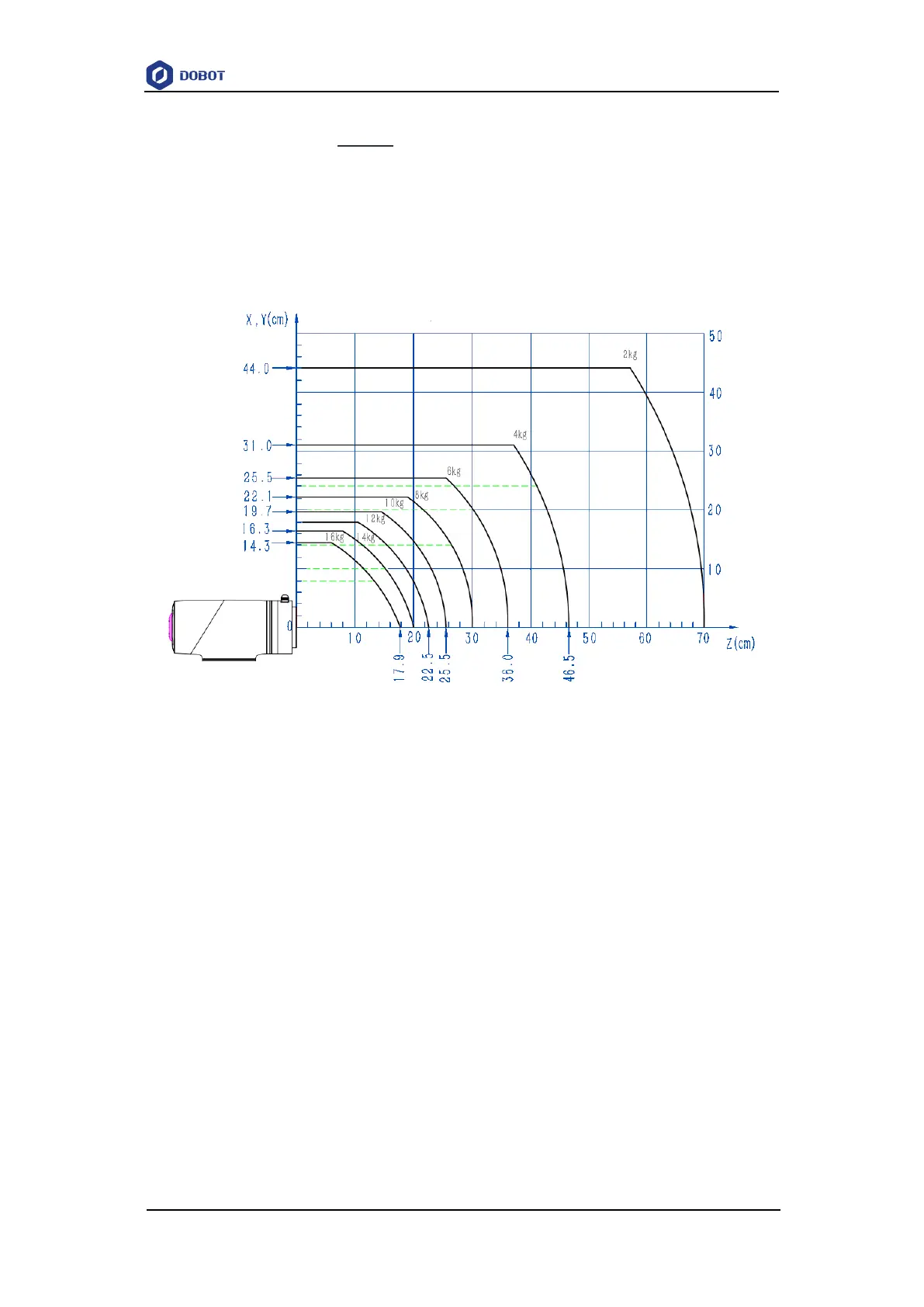 Select the corresponding curve according to the weight of the load. As the load is 2.8kg,