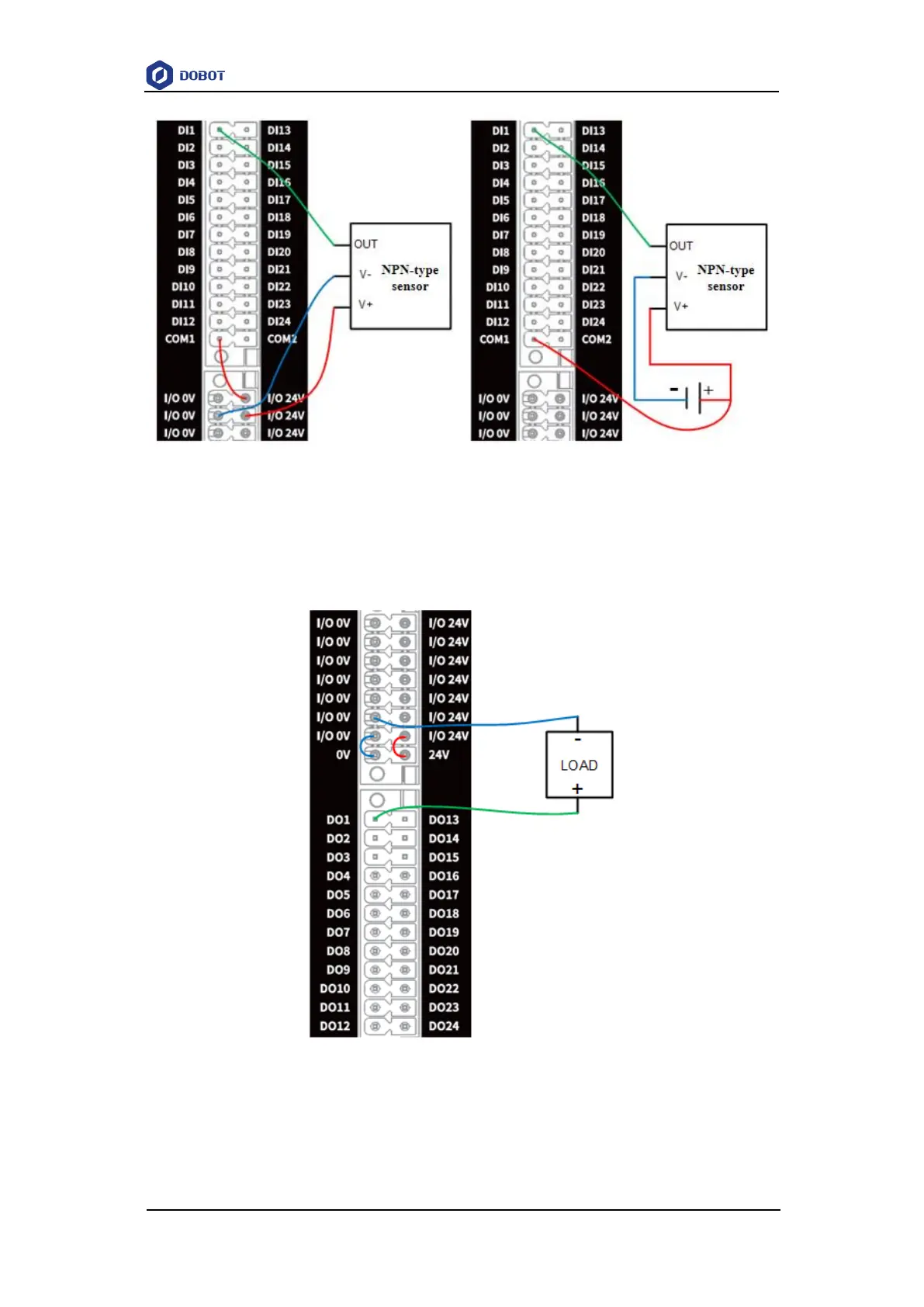 The wiring of NPN-type DO connected to external load is shown below.