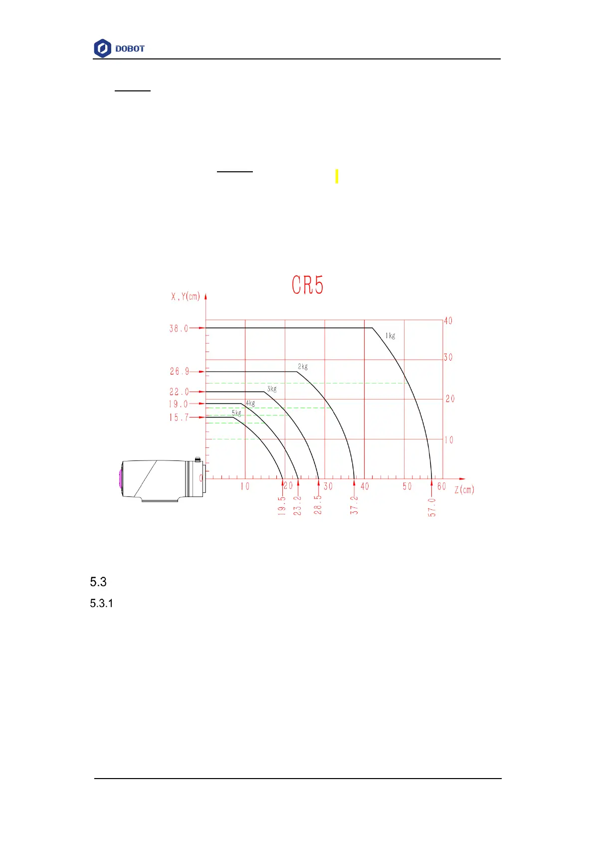 the abscissa Z[cm] represents the distance from the gravity center of the load to the robot flange in