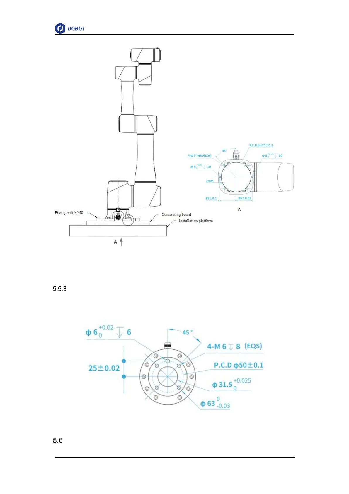 The end flanges of CR series robot arms are all in the same size. The flange design conforms