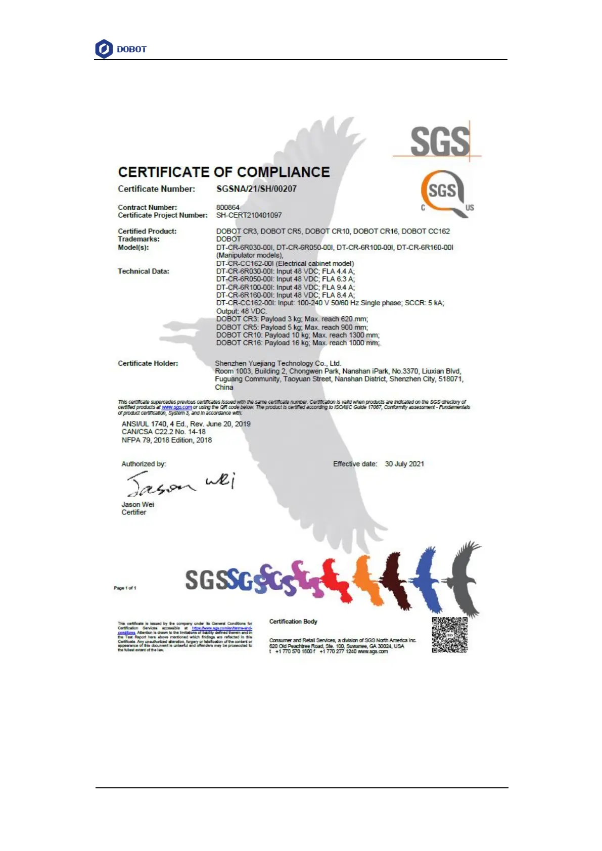 NRTL certificate