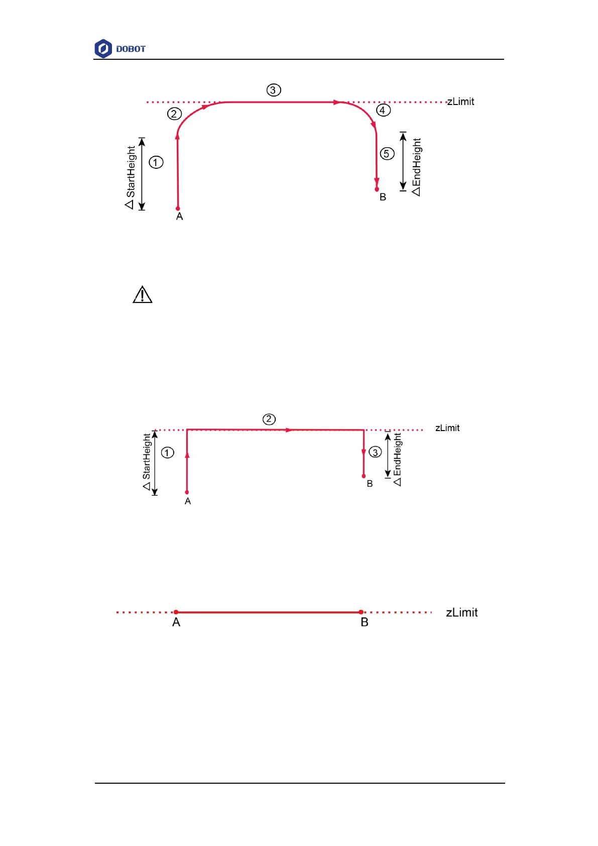 Point A and point B cannot be higher than zLimit. Otherwise, an alarm will be