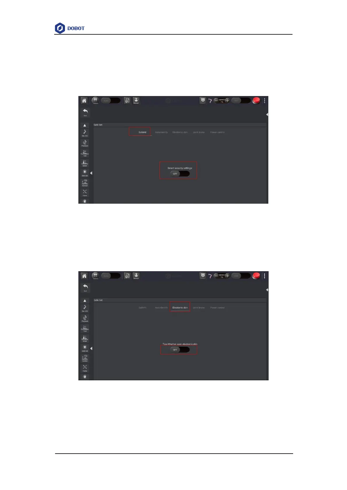 If the electronic skin function is activated, the robot will evade it when the robot hits an