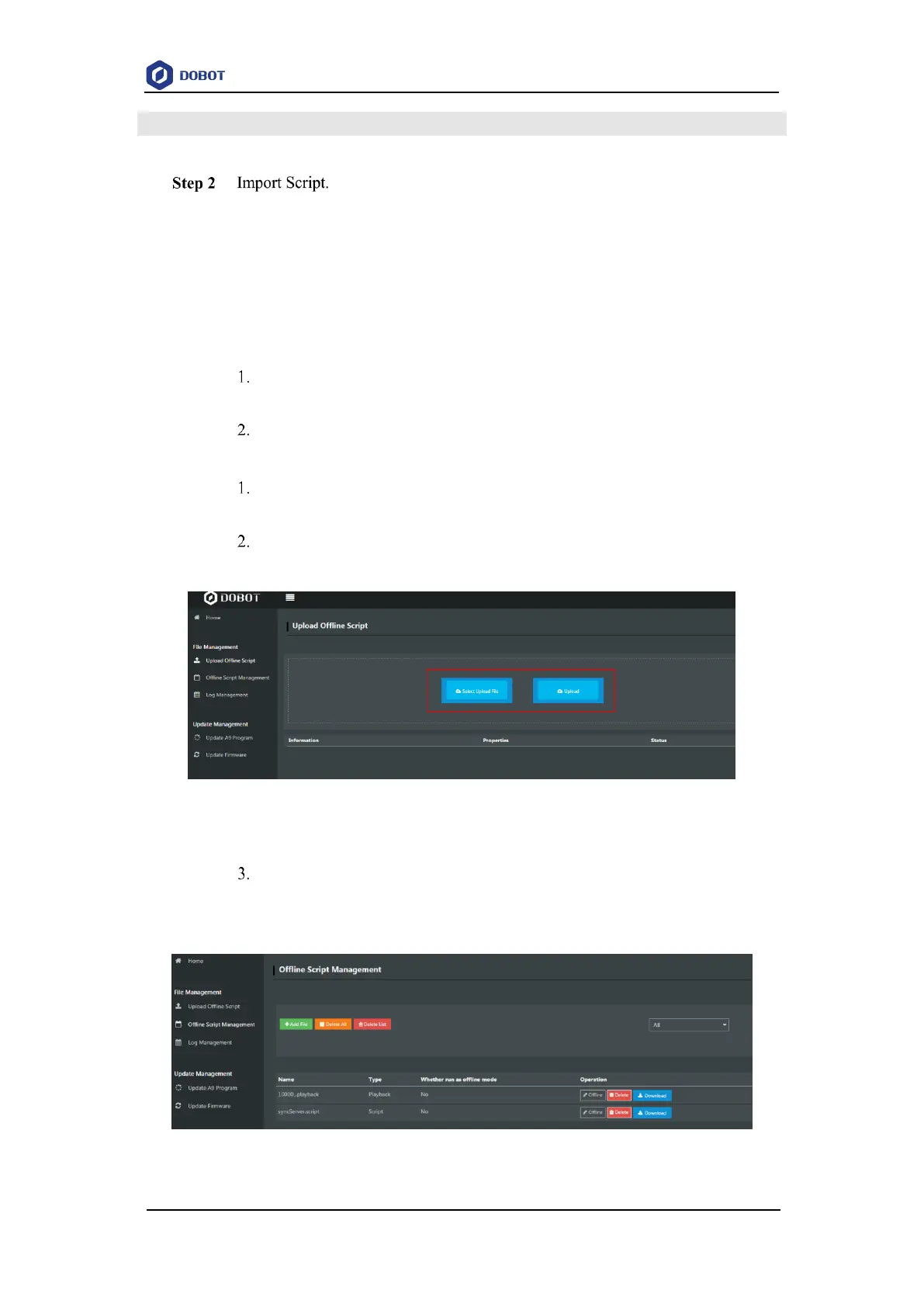 Click Tools > Web Management > Upload Offline Script to upload the script