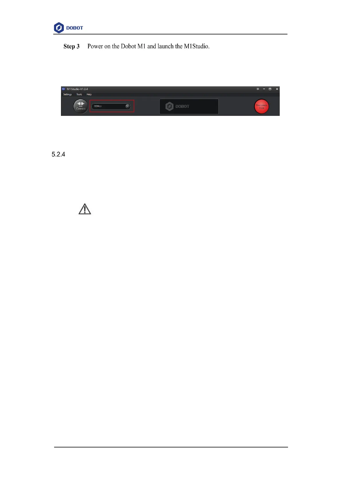 a PC can only control single Dobot M1. The connection is shown in Figure 5.13.
