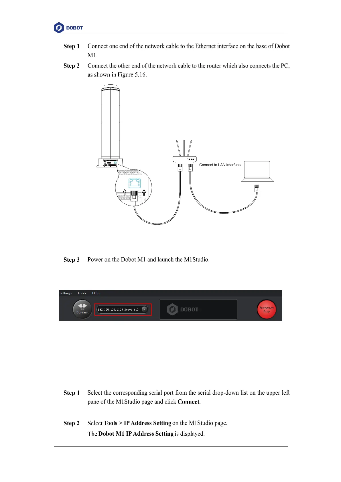 If the IP address is not displayed on the upper left pane of the M1Studio page after powering