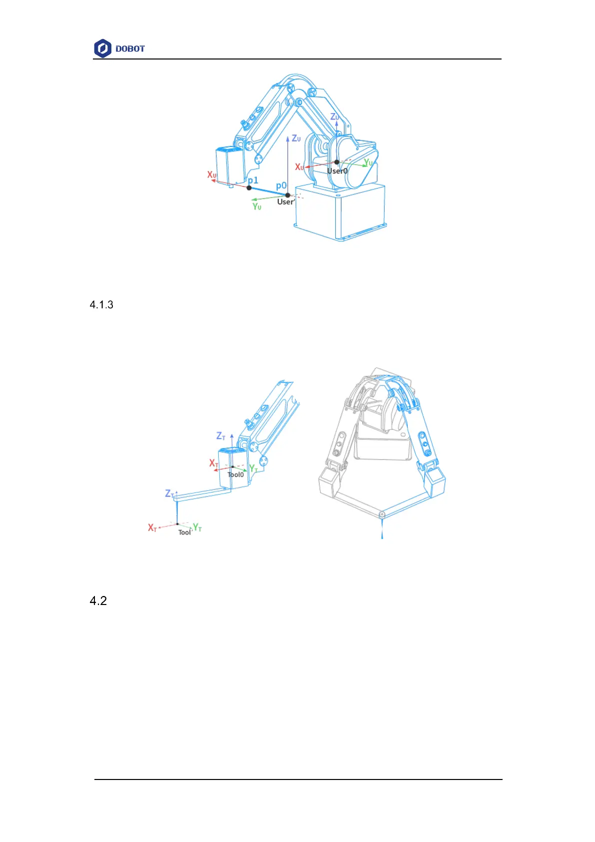 default tool coordinate system is determined based on the end of the robot, as shown in Figure 4.3.