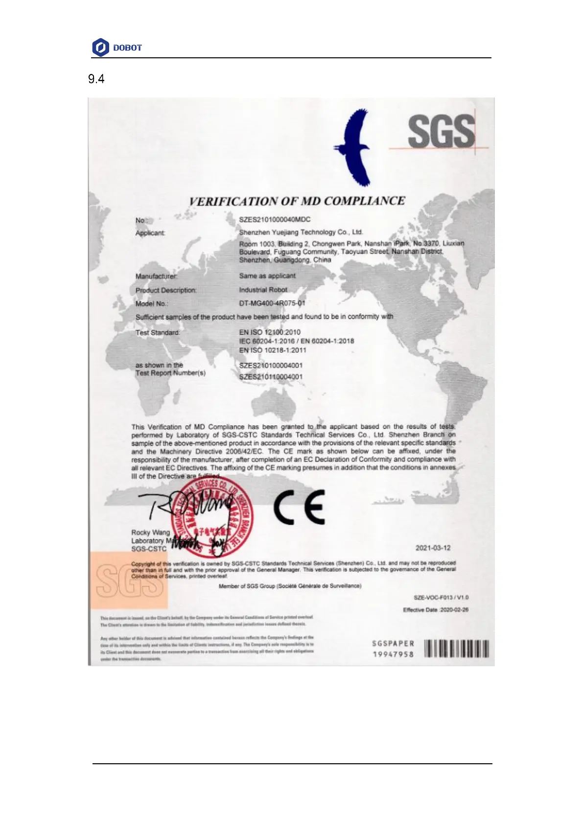 Dobot MG400 - CE-MD Certification