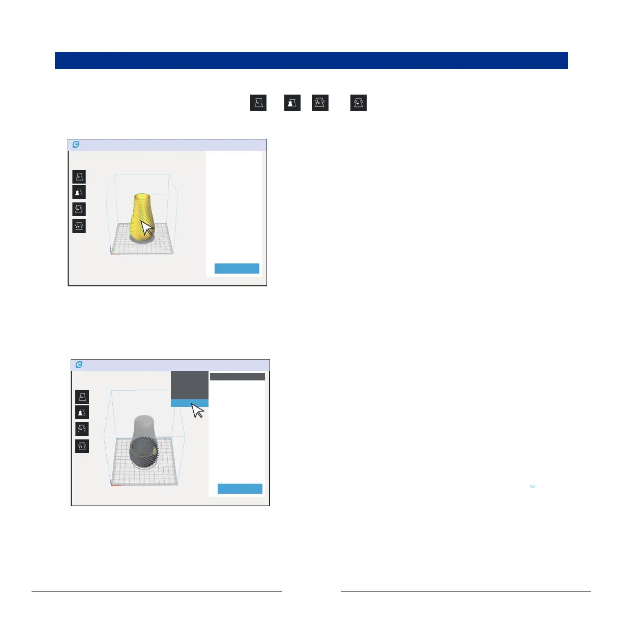 ① Adjust the model: left click on the model, four options “ ”, “ ” , “ ” and “ ” will appear on the left side of the interface,