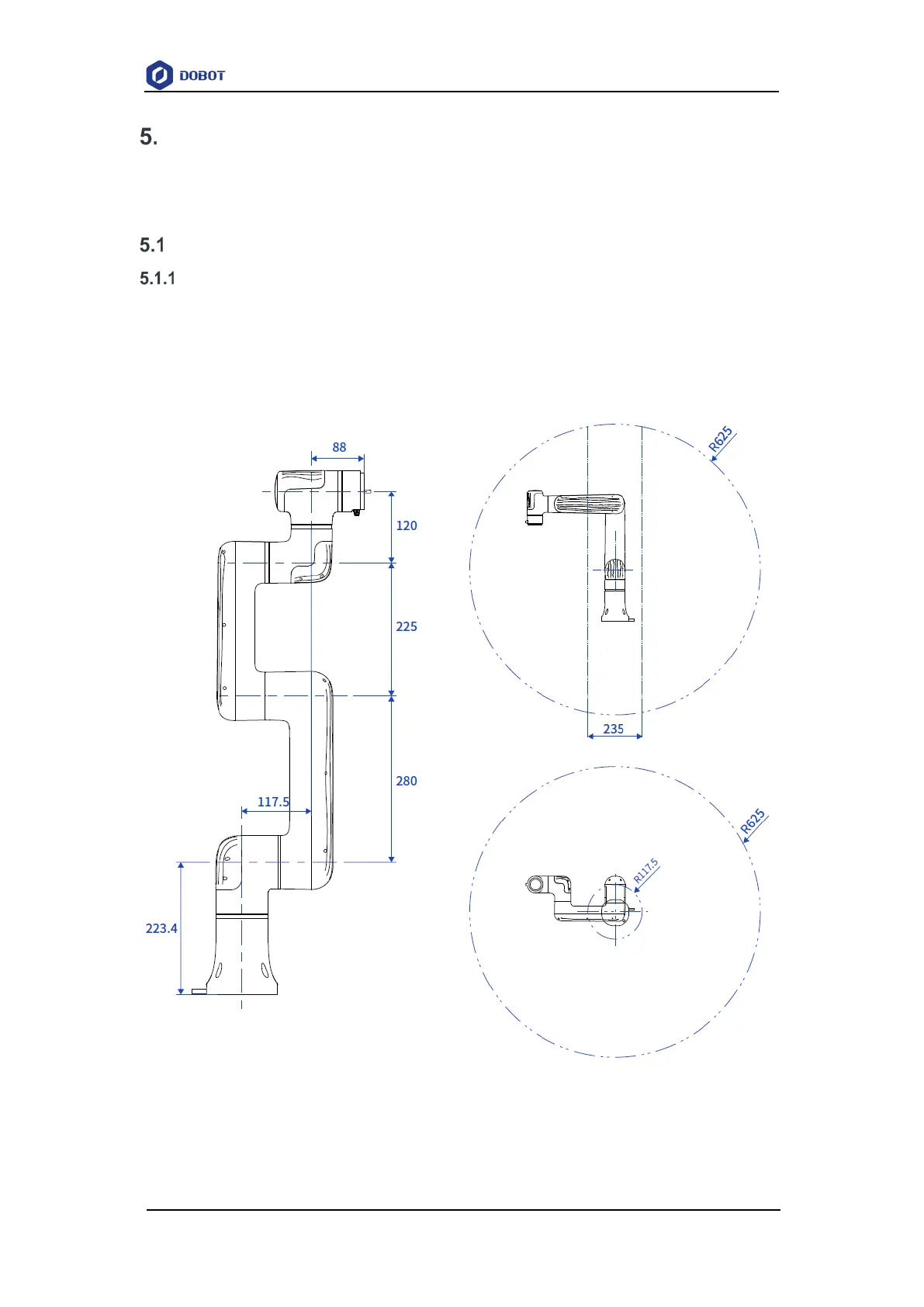 When selecting the installation position for the robot, you must consider the cylindrical space