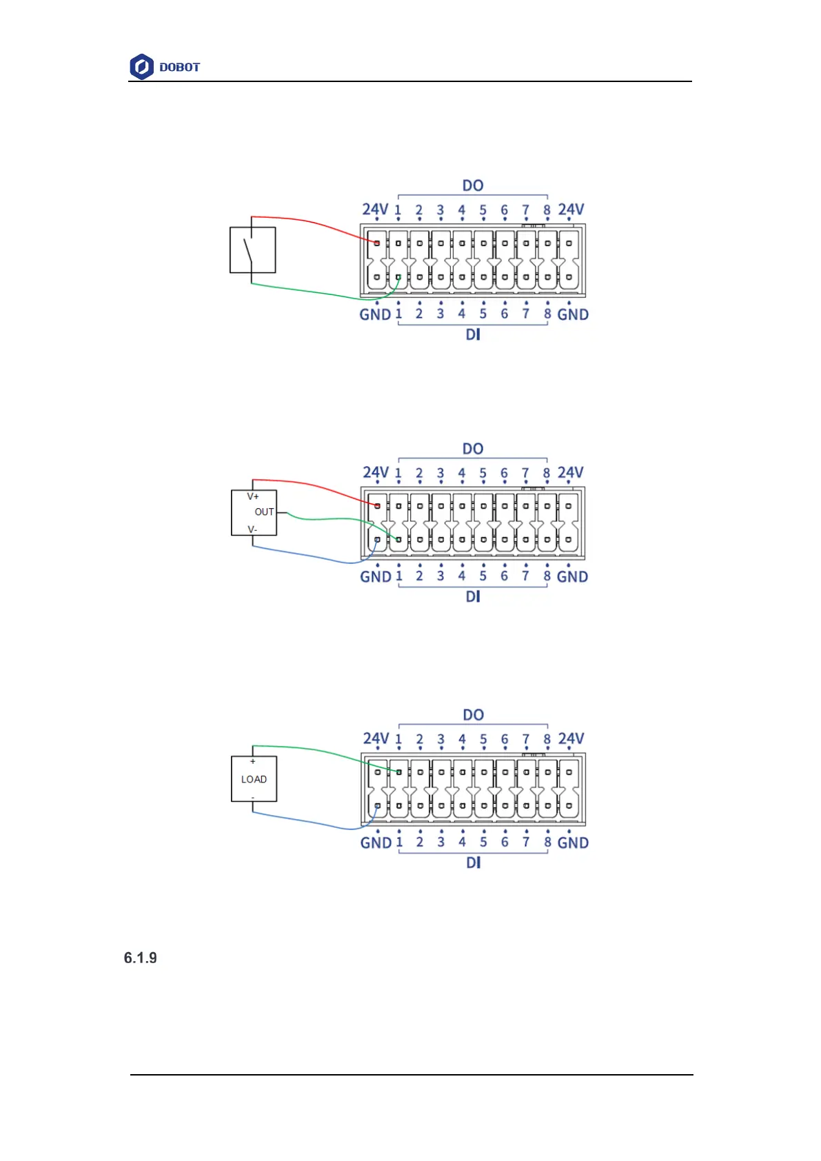The wiring of DO interface connecting an external load is shown in Figure 6.12.