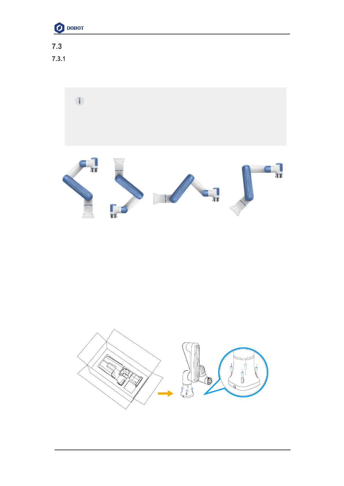 Nova robotic arm supports 360° installation at any angle. Figure 7.1 shows several typical