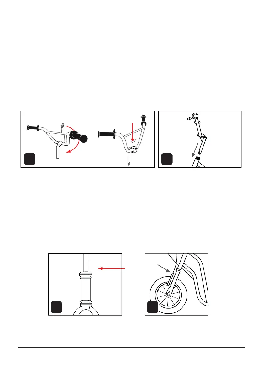 6. Insert the handlebar rod into the handlebar tube (picture 4). Adjust the height of the handlebars according to the rider’s