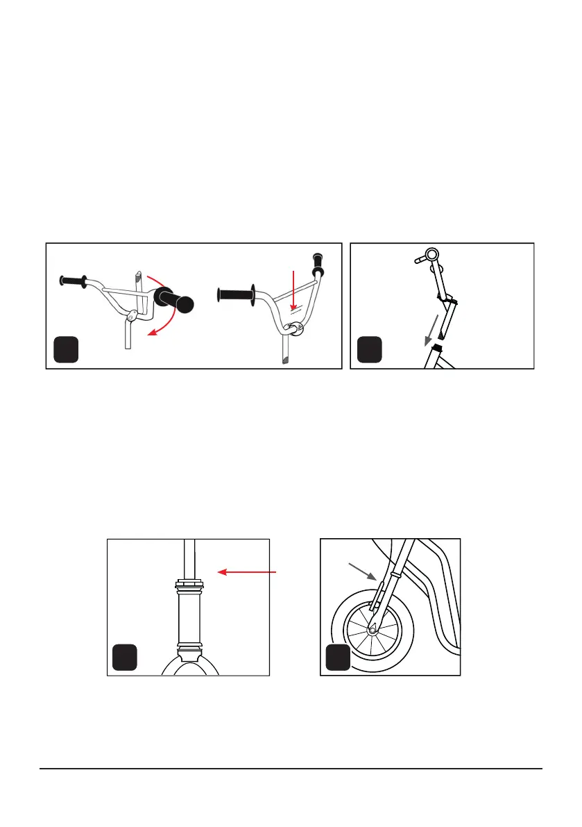 6. Insert the handlebar rod into the handlebar tube (picture 4). Adjust the height of the handlebars according to the rider’s