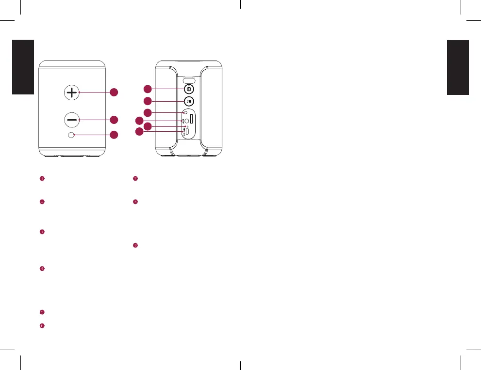 4. Drücke die “+” und “-” Tasten, um die Lautstärke des D MINI zu