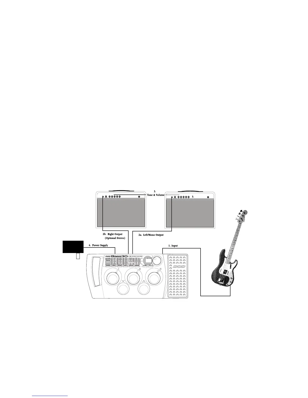do not connect the power to the Bass30, or turn on the power to your amplifier until the completion of these