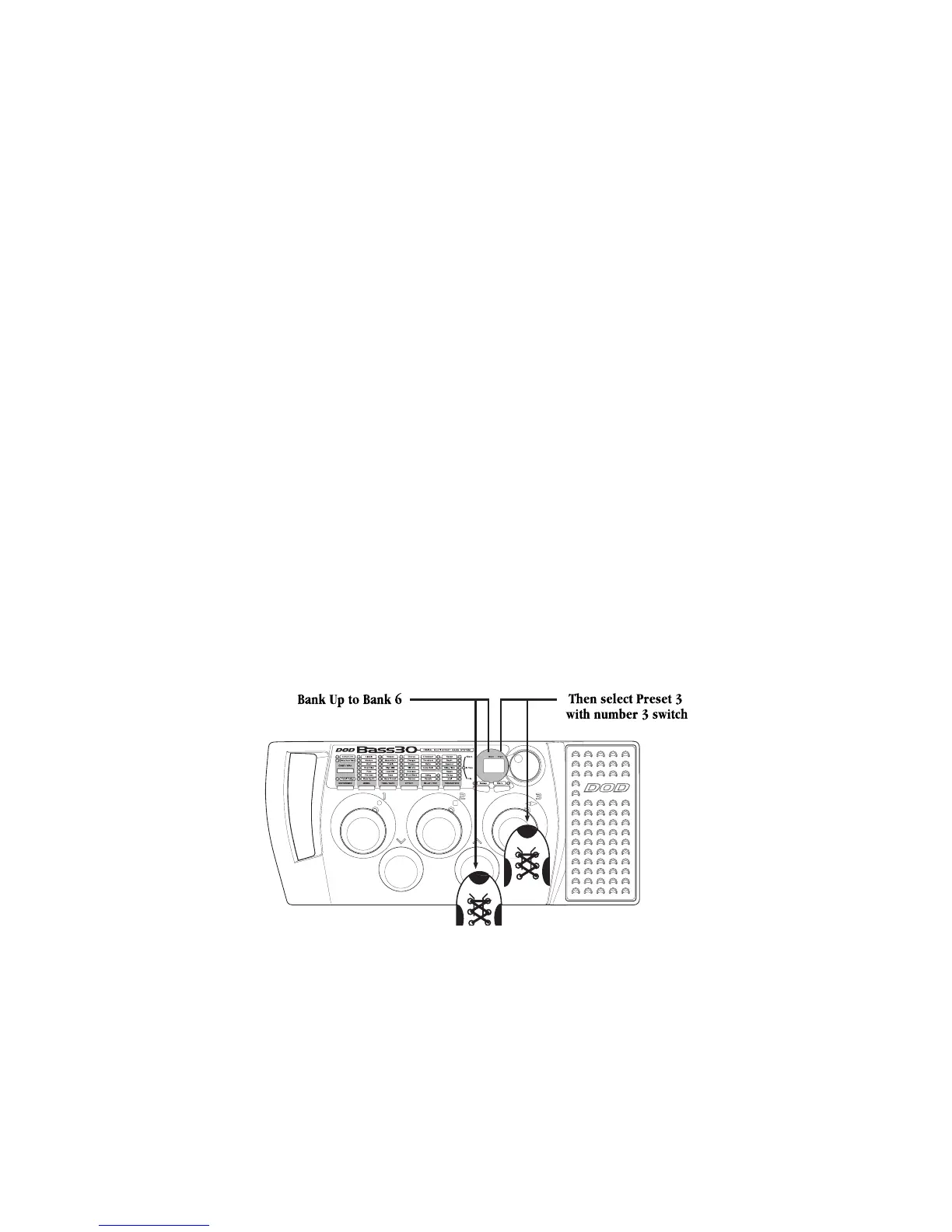 then show 63 . The Preset footswitches are also used to bypass the Bass30. To bypass the Preset, press the