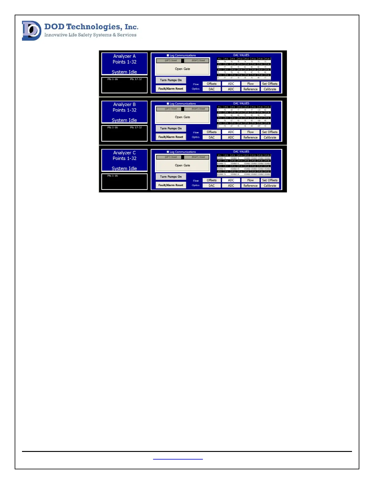 button for each analyzer and look for any “0” values or “4095” values. If any point has these DAC or ADC