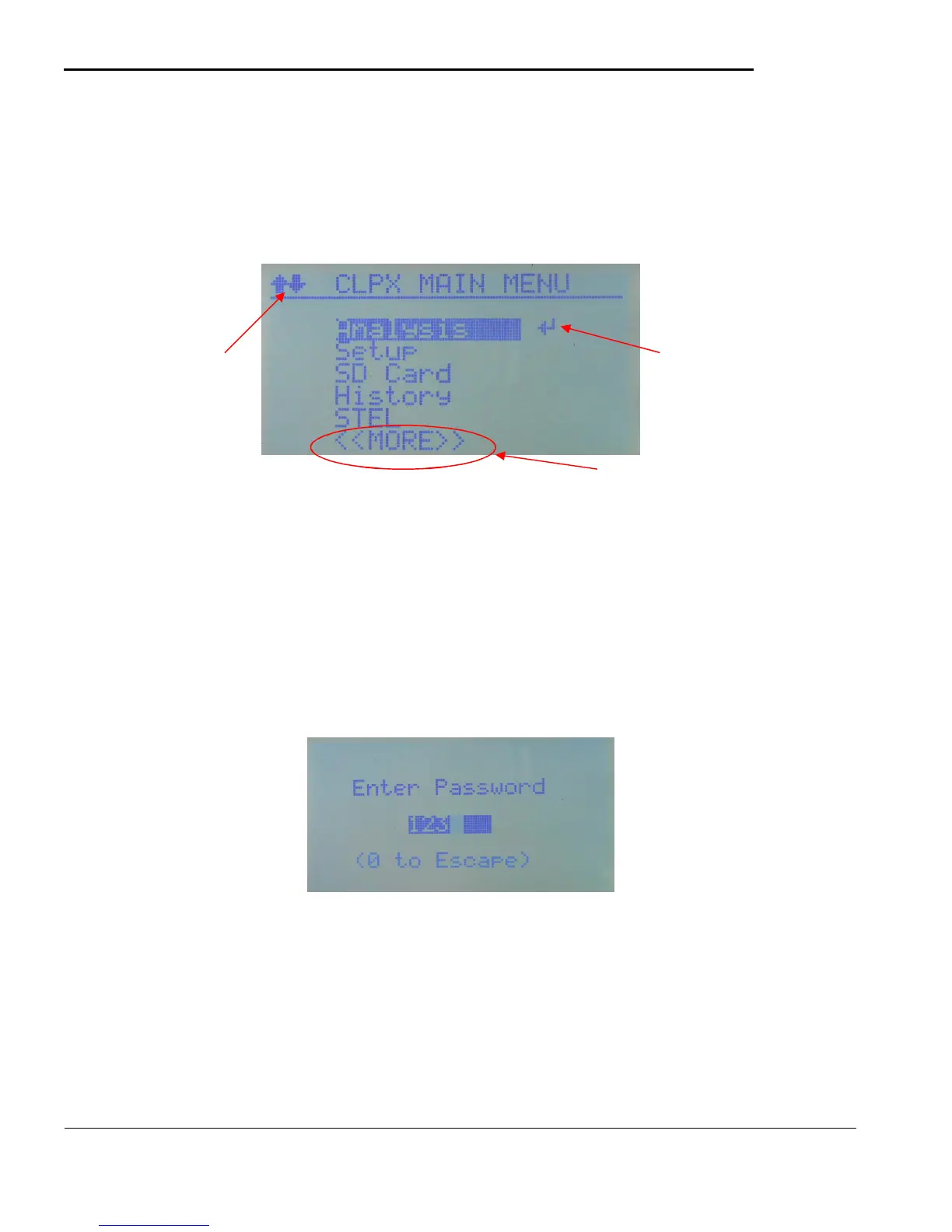 The CLPX is controlled using the 5-key keypad located under the display. All of the display screens are