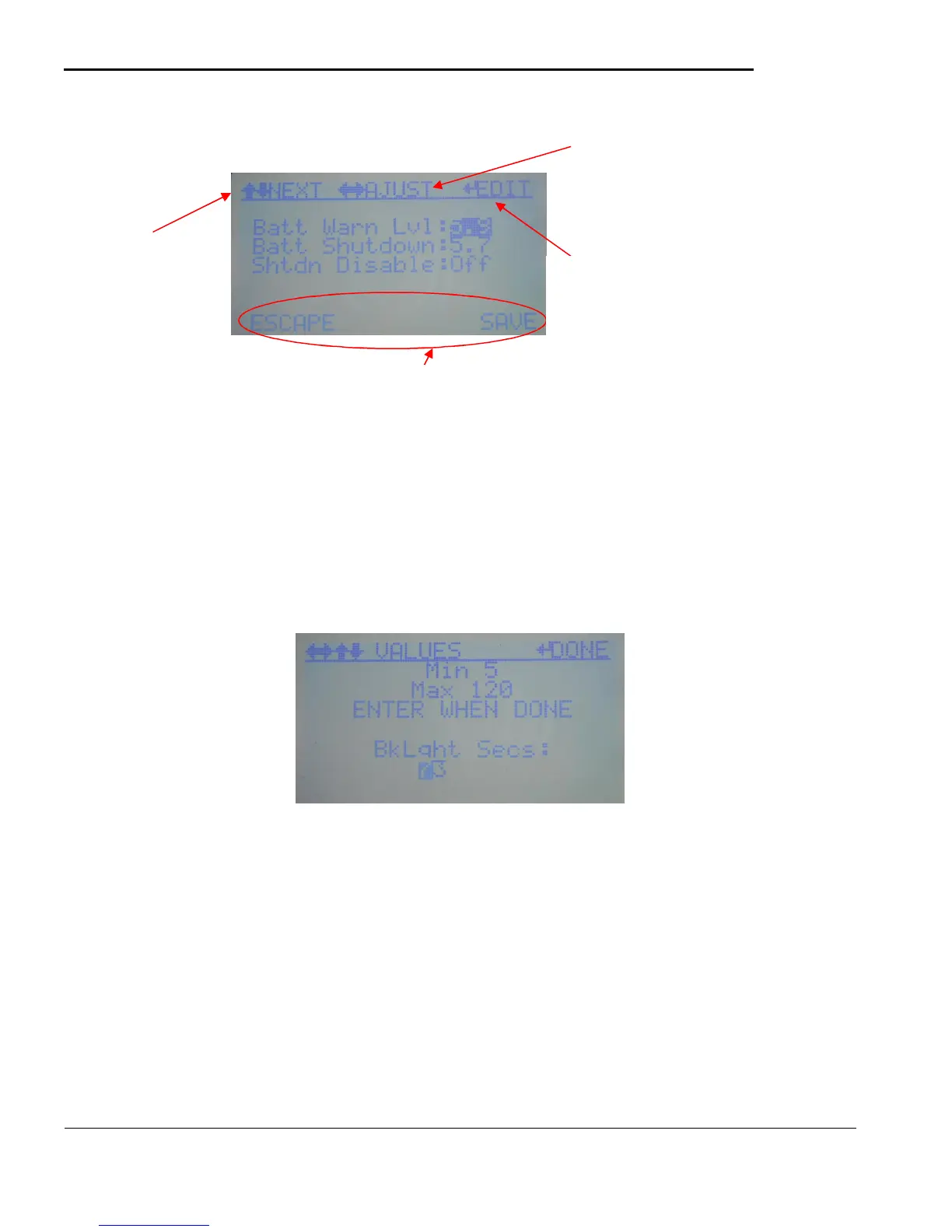 row for a highlighted value the operator can either use the LEFT/RIGHT to change the value or use the