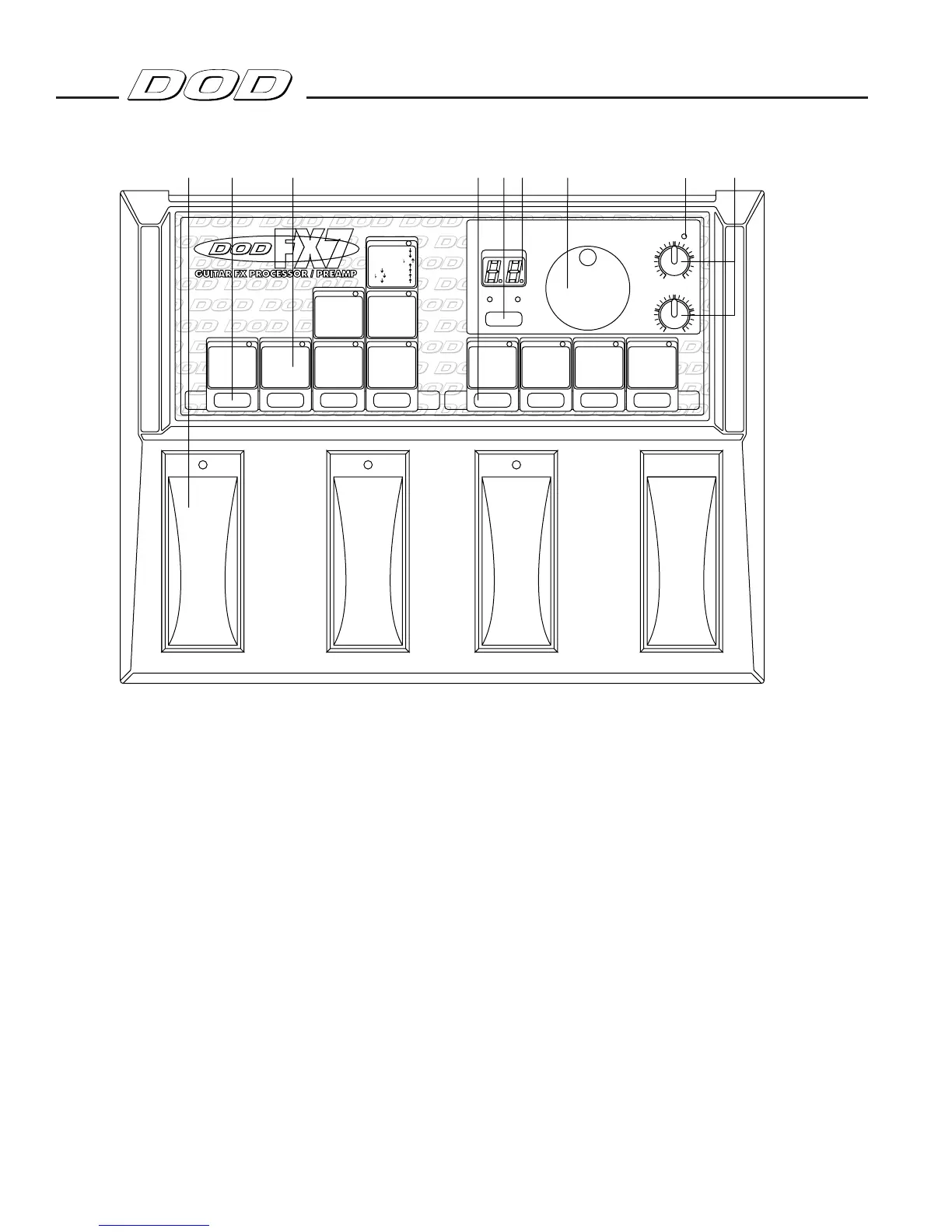 \ 4) EFFECT SELECTOR BUTTONS (PREAMP) - This row of four