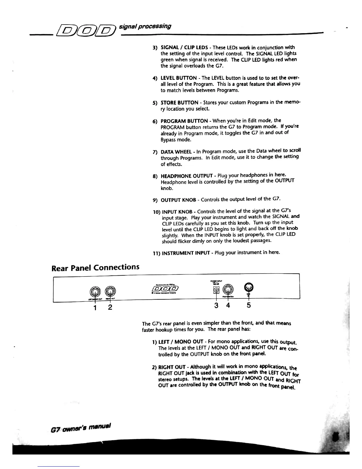 DOD G7 - Rear Panel Connections