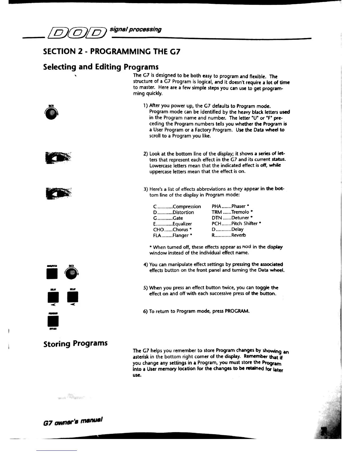 DOD G7 - Programming the DOD G7; Selecting and Editing Programs; Storing Custom Programs