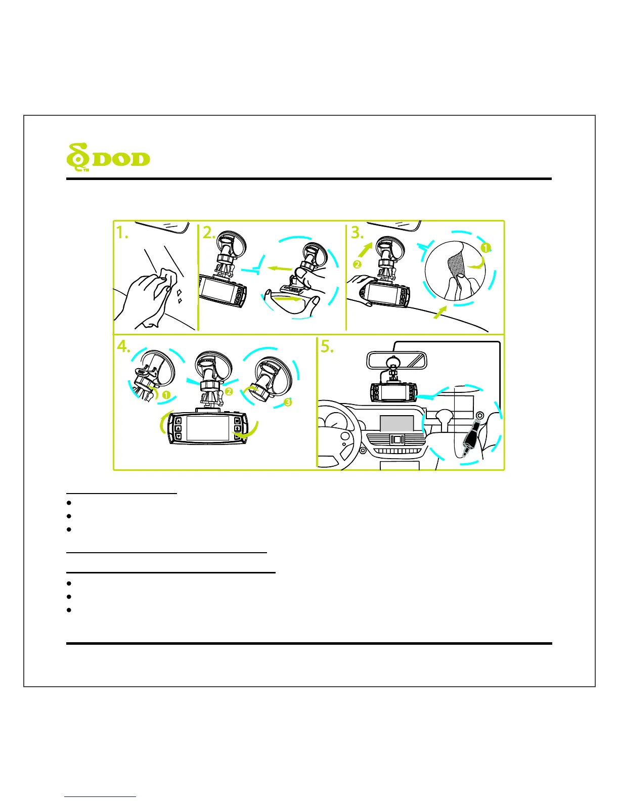 DOD LS370W+ - Installing Your Camera; Windshield Preparation and Mount Attachment; Camera Installation Preparation