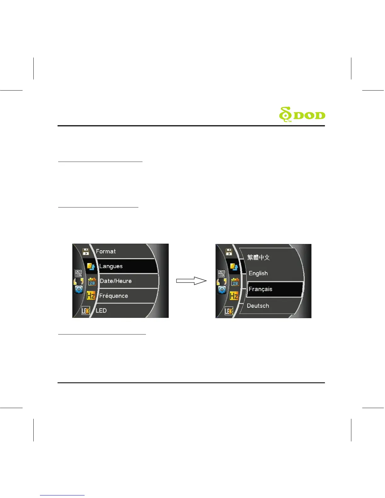 Après l'alimentation de la caméra pour la première fois, utiliser les touches fléchées