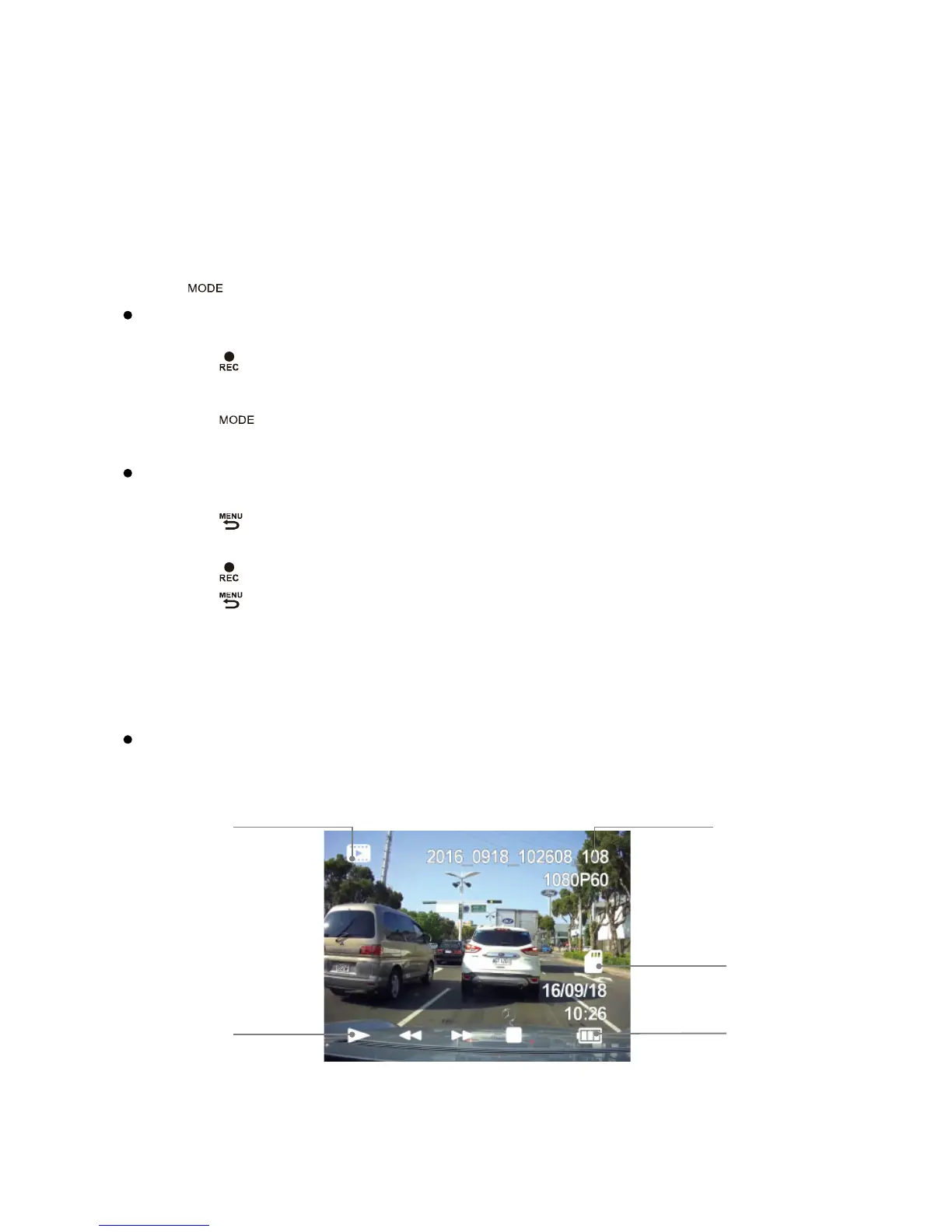 Press【 】to switch into the Playback Mode when unit is not recording.