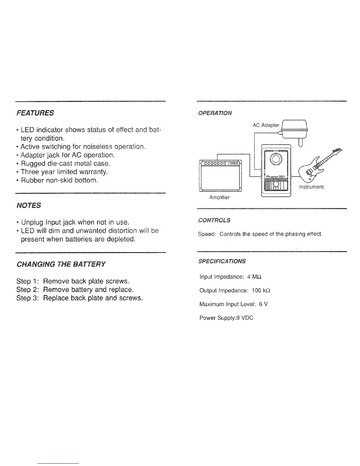 DOD Phasor 201 - Product Features; Product Operation; Notes and Battery Replacement; Controls and Specifications